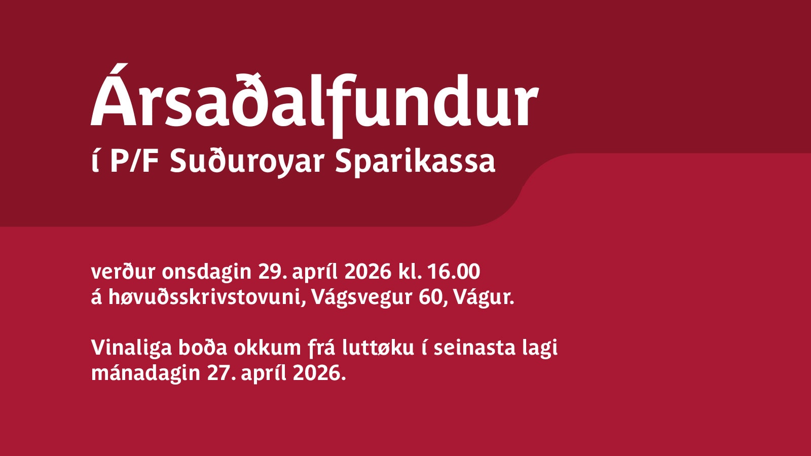 Ársaðalfundur verður 29. apríl 2026 í høvuðssætinum í Vági.
